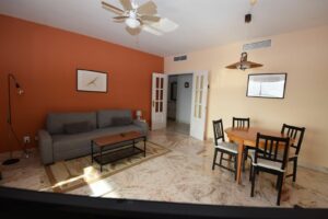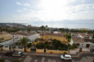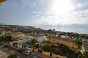 Breathtaking sea and town views from the terrace of this excellent two bed, two bath fourth floor apartment in the ever popular Jardin Botanico community. The spacious lounge-dining room has direct access to the terrace which has stylish glass curtains, making it the perfect space for relaxing or entertaining all year round. The independent kitchen comes fully equipped and includes a convenient laundry room. The master bedroom has an ensuite bathroom and there is a guest shower room for bedroom two. Both bedrooms have built in wardrobes and views over the beautiful communal garden and swimming pool. This apartment is perfect for comfortable year-round living or as a vacation retreat. Included in the sale price is a secure, allocated underground parking space and there is lift access from the garage level directly to the apartment floor. This is a peaceful, gated community, close to a great selection of supermarkets, shops, restaurants and bars and within comfortable walking distance to the beach and the boardwalk. Whether you're looking for a permanent home or a holiday escape, this property is a fantastic opportunity.