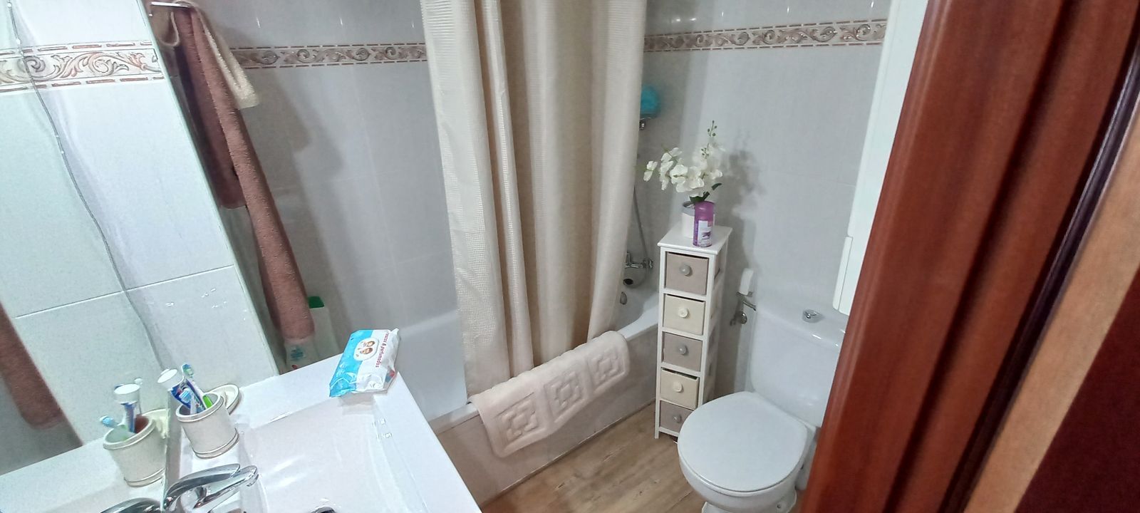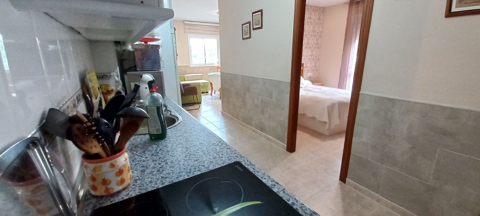 The apartment is on has two bedrooms, one bathroom, fully fitted kitchen and sitting/dining room. There is a lift in the complex.