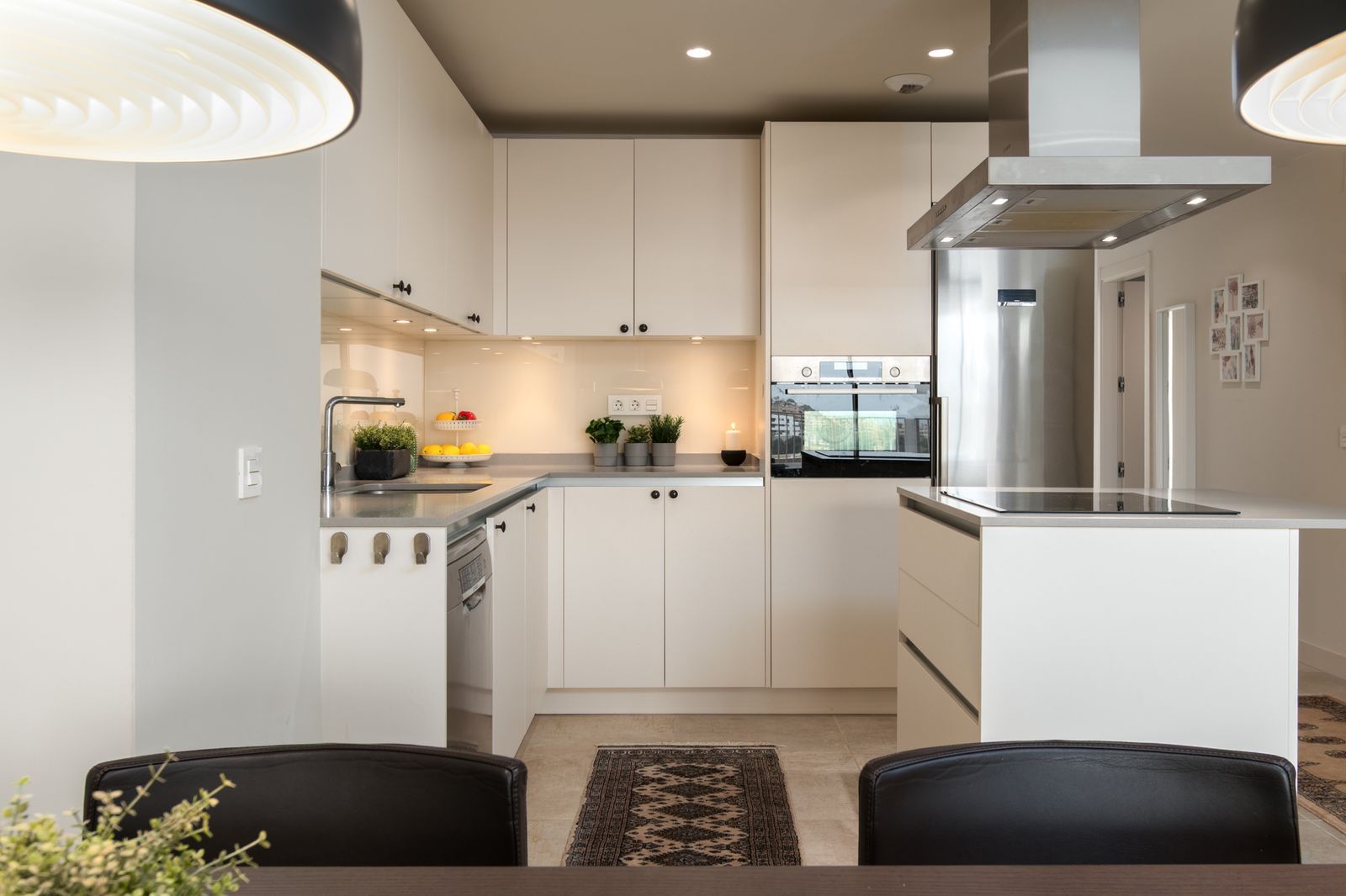 Kitchen: Custom-made and practical open-plan kitchen of good quality, fully equipped with premium appliances including fridge/freezer, oven, microwave and dishwasher.