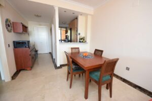 We are excited to showcase this charming middle floor apartment situated in the prestigious Calanova Sea Golf development (Mijas Costa). Constructed in 2006 and maintained in superb condition, this property spans 112m² in total and features a spacious living-dining area, a separate equipped kitchen, two double bedrooms with built-in wardrobes, and two full bathrooms (one being en suite). A highlight is the expansive double-aspect terrace, perfect for taking in the lovely weather throughout the year. Additional amenities include centralized hot/cold air conditioning, marble flooring, and plenty of natural light. The price also covers a subterranean parking spot and a storage unit. The community offers five swimming pools, well-kept gardens, and a tranquil ambiance, just a few minutes away from the Calanova golf course and the beach.