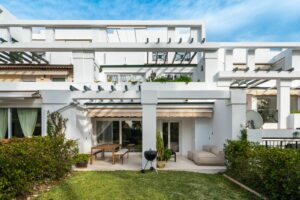 This charming apartment is located in the prestigious gated community of Las Terrazas de La Quinta, a peaceful, private, and secure residential area with excellent access to the AP-7, just 7 minutes from Puerto Banús and 12 minutes from Marbella.