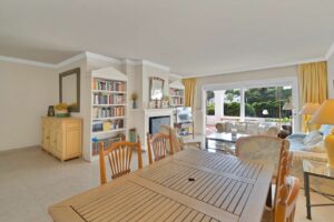 Magnificent first-floor apartment located in La Quinta, Benahavis. This two-bedroom, two-bathroom property is situated on the first line of the golf course in Balcones de La Quinta, a gated community with two swimming pools. Due to its generous size and layout, a third bedroom could easily be added. It features air conditioning, electric blinds, a fireplace, and a large terrace with golf course views.