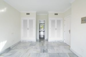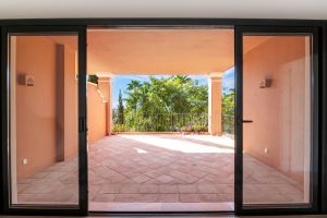 The south-west facing apartment in Benahavis comes with a large and secure underground parking space which is accessed via the elevator which arrives right outside the front door of the home. Opening the front door, a very welcoming and clean open space is the first impression, with the cleverly reformed kitchen space which has been opened up to integrate the living and dining areas with it in an American style. This allows for the maximum usability for families who wish to prepare food, eat and relax together. Further to this is the lovely private terrace. Here, doing and relaxation can be carried out with total privacy and views to the hills that roll down to the west coast of Marbella.