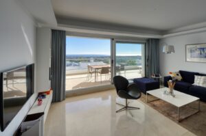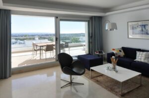 Elevated 2-bedroom, 2-bathroom apartment in Avalon, Los Arqueros, offering panoramic sea views and open views towards La Concha.