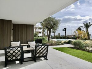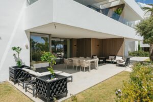 It has pursued aesthetics which integrate perfectly into the privileged environment which hosts this residential project, thereby allowing its owners to enjoy both their own apartment and that of the natural setting. Gardens by the well-known French landscape architect Mathieu Lèbre. which highlights the values of the project while making the most of the elevated position and south-west orientation. With a great selection of golf courses located less than 5 minutes away, including: Los Arqueros Golf & Country Club, El Higueral, Marbella Club Golf, Atalaya Golf, Guadalmina, La Quinta, Los Flamingos.