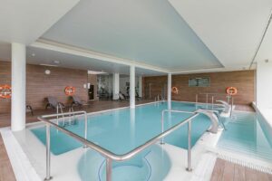 A luxury Indoor Heated Pool & Spa area with a sauna and steam room—perfect for year-round relaxation.