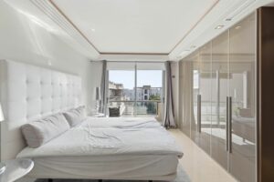 The state-of-the-art kitchen is fully equipped with premium appliances, sleek cabinetry, and a functional layout designed for modern living. Both bedrooms offer direct terrace access, ensuring you wake up to stunning vistas every morning. The master suite boasts a luxurious bathroom with a walk-in rainfall shower and high-quality marble finishes.