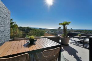 This spectacular duplex penthouse apartment of recent renovation and improvements, located on the second floor in corner, with south west orientation, has stunning panoramic views of the sea, the mountain, Gibraltar, the golf course and the whole environment. In addition, these views can never be blocked, due to their height.