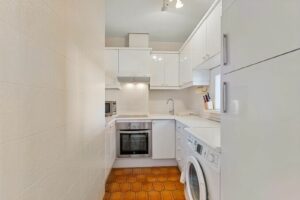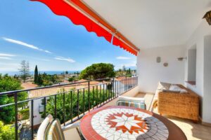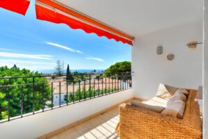 Within the quiet residential area of El Mirador in Marbella is this sunny third-floor apartment. Featuring two bedrooms, a bathroom, living-dining room, fitted kitchen and a spacious terrace with stunning sea views.
