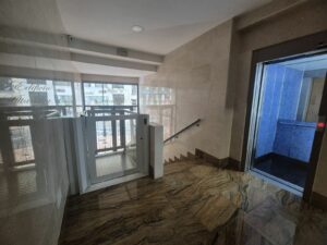 Luxury features include: hardwood floors, split air conditioning, built-in wardrobes, two terraces (one north-facing and one east-facing), elevators, wheelchair access ramps, a modern open-plan kitchen/living room, and high-end appliances.
