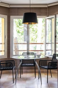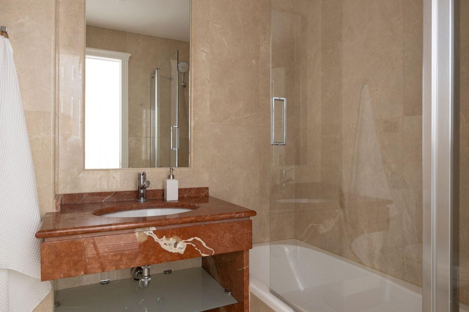 Enjoy the elegance of travertine marble walls on the terrace and a fully equipped kitchen with a cozy breakfast nook. The living and dining area connects seamlessly with a covered terrace, ideal for entertaining guests or relaxing while enjoying the breathtaking views.
