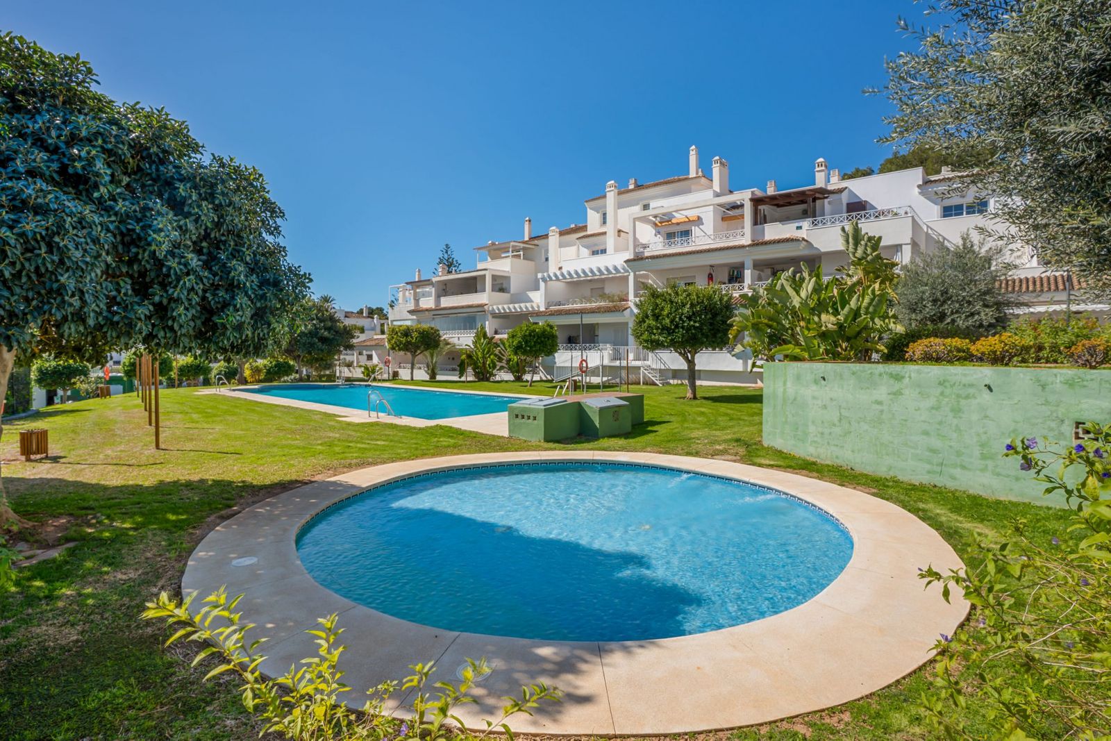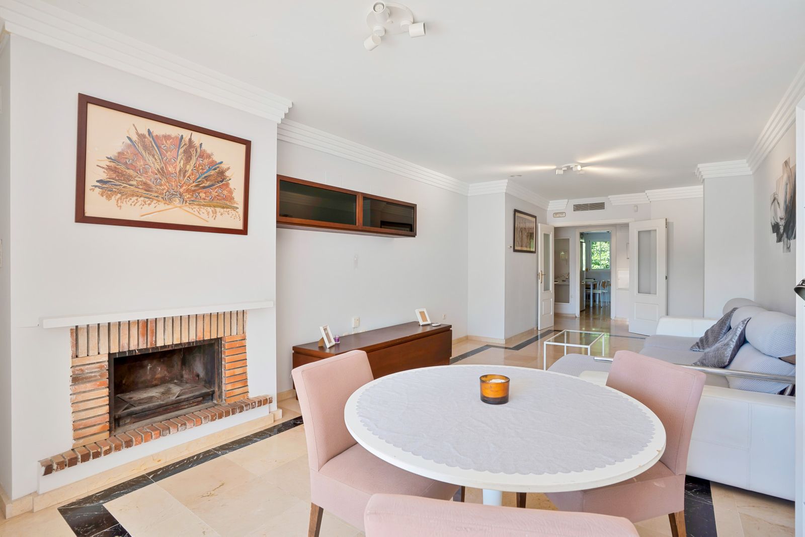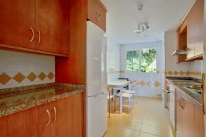 Bright south west-facing two bedroom apartment located in the gated community of Lomas de Rio Real, Marbella. This property offers a large entrance hall leading onto a fully fitted kitchen with seperate utility room, a very spacious living and dining room with fireplace and direct access to a private terrace. There is one guest bedroom and one family bathroom, plus a master bedroom with ensuite. This first floor apartment has natural light throughout, lift access, air conditioning and an allocated parking space in the communal garage. Residents also enjoy access to the beautifully lascaped gardens and communal swimming pools. Ideally located close to all amenities, golf courses and shops, and just a short drive to the beach and Marbella itself.