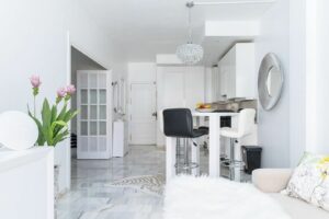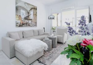 Scandinavian style, brand new bathroom and guest WC, open plan kitchen and living room.