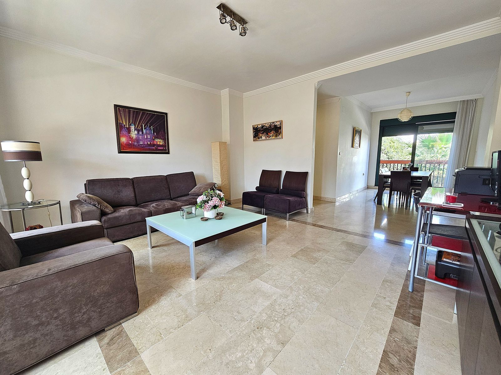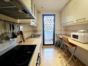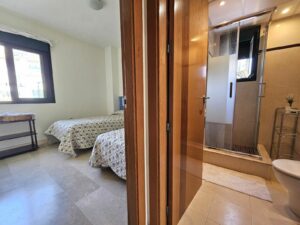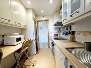The apartment’s southeast-facing orientation ensures bright mornings and cool afternoons, making it a welcoming space all year round. It comes with 24-hour security, marble floors, and double-glazed Climalit windows with exterior blinds.