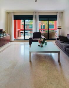 Luxury details elevate this home, including gleaming marble floors, double-glazed Climalit windows with exterior blinds, 24-hour security, and an automatic doorman. Relax in the beautifully maintained communal gardens or take a dip in the sparkling pool. Plus, with a dedicated parking space and storage room, convenience is at your fingertips.