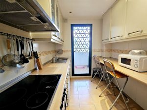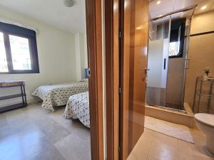 The apartment’s southeast-facing orientation ensures bright mornings and cool afternoons, making it a welcoming space all year round. It comes with 24-hour security, marble floors, and double-glazed Climalit windows with exterior blinds.