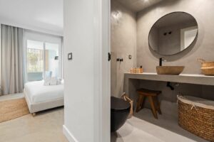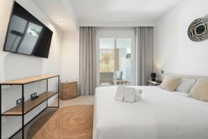 Stylishly refurbished ground floor apartment with a private garden in Cortijo del Mar. Closed development with 24 hours security, pool and pool restaurant. Walking distance to various amenities. Tourist licence in place. Great rental investment. Garage space and storage are included in the price.West facing so you can enjoy the afternoon sun.