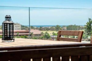 This elevated 5th floor unit boasts open sea views, with bright natural light per its position. The layout is modern and practical, divided between living and resting areas. The kitchen is open with all appliances. The living room is large, leading directly to a confortable sized terrace. Both bedrooms are of good size, with bathroom ensuite.