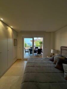 The house is located on the ground floor of a modern building with elevator. It offers an interior surface of 130 m2 and a terrace of 40 m2, ideal to enjoy the sunny climate of the Costa del Sol. The apartment is fully furnished, with a contemporary design and high quality finishes.