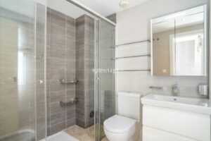 The apartment offers two well-proportioned bedrooms. The master bedroom features an en-suite bathroom and direct access to one of the terraces, creating a seamless indoor-outdoor feel. The second bedroom is served by a full guest bathroom located in the hallway, complete with a shower, making it perfect for family or visitors.