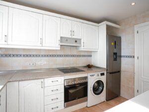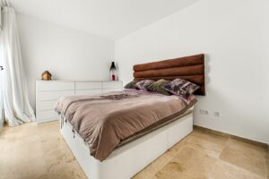 Apartment Pinehaven is a top floor home in Los Pinos de Aloha in Nueva Andalucía. It has three bedrooms and three bathrooms. The layout is spacious and filled with natural light. The apartment has a private terrace with sea and garden views. It is close to golf and international schools and offers A/C and a fireplace.