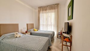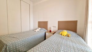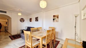 This cozy apartment has 2 bedrooms with built-in wardrobes and one full bathroom. The kitchen is fully equipped. The bright living room has direct access to an east and south-facing terrace, where you can enjoy unobstructed views of the communal gardens and pool.