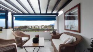 Just a two-minute walk from the beach, this apartment in Medina Garden is the ideal place for a family vacation. This wonderful apartment can accommodate up to 5 people. It offers 2 bedrooms (with extra beds and plenty of closet space), 2 bathrooms, a well equipped kitchen with separate laundry room with washing machine, a spacious living room and a large terrace with a dining and sitting areas with stunning sea and mountain views. It is not only the incredible views of Gibraltar and the African coast that give this apartment its privileged location, but the amazing views of the "Pueblos Blancos" at night, as their lights spread like a Bethlehem all over the mountains in the area. The southern Spanish climate makes this terrace the perfect place to sit with a glass of wine and some tapas in the evening, enjoy a cozy breakfast or brunch, or just relax with a good book with the sounds of the sea and seagulls in the background. The apartment has an elevator and a convenient subway parking space with direct access to the apartment. It also has central air conditioning and free wi-fi.