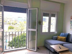 This beautifully decorated two bedroom, two bathroom apartment is located in the very popular Puerto Banus marina in Marbella, just 20 meters from the beach. The views are of the Plaza de Antonio Banderas square which also has the “El Corte Ingles” department store, that focuses on top brands.