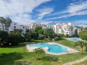 Complex with 4 swimming pools, paddle tennis court and large green areas.