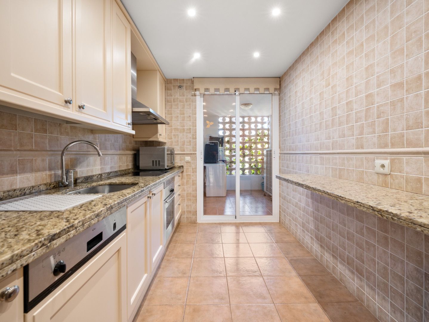 The layout is bright and practical with comfortable living spaces and direct access to a spacious private terrace. The terrace overlooks the pool and gardens, offering a quiet and private setting for relaxing or dining. Both bedrooms are well sized and the apartment is ready to move in or rent out.