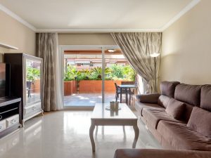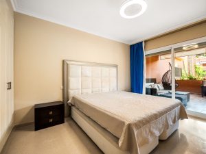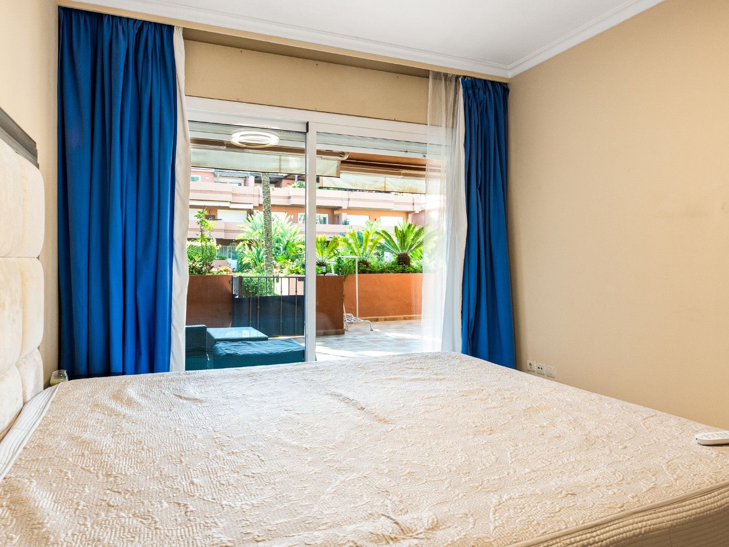 This is a stunning elevated ground floor apartment with 2 bedrooms and 2 bathrooms in a gated community in Puerto Banús. It includes a private parking space, a communal pool and gardens, and is fully furnished. The apartment is within walking distance to the beach and all local amenities, making it ideal for easy coastal living.