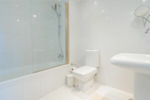 Located on the 5th floor, the home includes two double bedrooms, two bathrooms, a spacious living room with an open-plan kitchen fitted with modern appliances, and a cosy covered terrace with sea views ideal for relaxing.