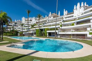Beautiful two bedroom ground floor apartment, located in the sought-after Birdie Club community in Río Real, Marbella, this renovated property offers a peaceful and secure setting just a short walk from the beach, close to the golf club, and next to the future Four Seasons resort. Fully refurbished in 2021, the apartment features bright and spacious interiors and its own private entrance. This home includes two bedrooms with built-in wardrobes and access to a glazed east-facing terrace, one bathroom, and a comfortable living area with an open-plan kitchen that leads directly to the main west-facing terrace, perfect for enjoying the afternoon sun and the quiet surroundings. The community offers well-maintained gardens, a large communal saltwater swimming pool, and a separate children’s pool, creating a relaxed, resort-style atmosphere all year round. The property is sold fully furnished and includes a private parking space, with additional street parking available.