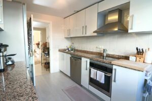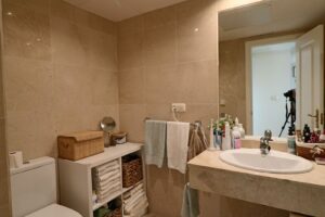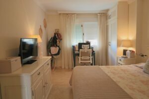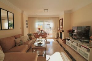 Magnificent southeast-facing two-bedroom apartment in Marbella, located in an exclusive private residential complex offering two swimming pools and spacious communal gardens, just a few steps from the beach and the Río Real golf course. This property, located on an elevated first floor, stands out for its spacious terrace with pleasant views of the green areas. Inside, it is distributed in an entrance hall, a spacious living-dining room with direct access to the partially covered terrace, a large separate kitchen with access to a generous laundry terrace, two bedrooms—the master bedroom being particularly spacious and bright thanks to a large window—and a bathroom. It also includes a large storage room and a parking space.