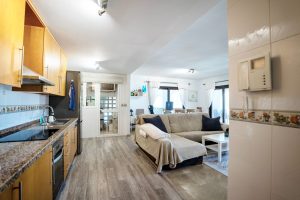 You enter a bright spacious living room with an open plan kitchen with direct access to the big terrace. The terrace is partially covered and also with large open space for enjoying the sun.