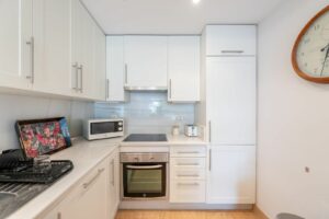 This apartment has two large bedrooms, with built in wardrobes…both with large windows allowing lots of natural sunlight. And a great size bathroom, with marble throughout is shared by the two bedrooms.