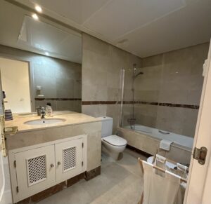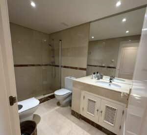 A first floor apartment in a highly sought-after complex on the beachfront of San Pedro de Alcantara. This is a prestigious development with well kept gardens and minutes from the beach and its many restaurants. The town centre is under 10 minutes walk where you will find all types of amenities and more restaurants and bars.