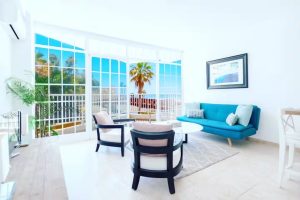 This beachfront apartment is ideally positioned directly along San Pedro’s promenade just steps from the sea.