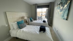 Master bedroom en suite and one guest bedroom with separate bathroom; both bedrooms leading to a terrace with beautiful partial sea views, Gibraltar and mountains.