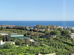 It offers a spacious living–dining area with direct access to a large panoramic terrace, one of the property’s key highlights, enjoying open views to the sea, green areas and natural surroundings.