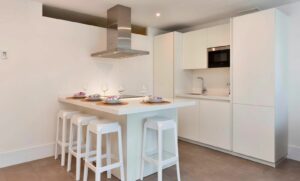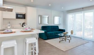 Filled with natural light, the apartment boasts beautiful open views of the Mediterranean Sea and the iconic La Concha mountain. The interior layout has been thoughtfully designed to combine comfort and practicality, featuring a generous living and dining area that flows seamlessly into a modern, fully equipped kitchen, perfect for both daily living and entertaining.