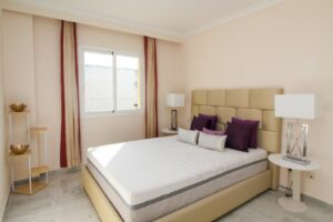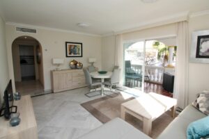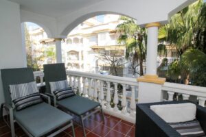 Attractive two-bedroom, two-bathroom apartment located in the sought-after community of Hacienda Nagüeles II on Marbella’s prestigious Golden Mile. Ideally positioned close to shops, supermarkets, cafés and all essential amenities, the property is also within comfortable walking distance of the beach, making it an excellent choice for year-round living. Situated on the third floor, the apartment offers 94 m² of built space with a bright and spacious layout. The main living area opens onto an east-facing terrace that enjoys pleasant views over the beautifully kept communal gardens. The property features marble flooring throughout, fitted wardrobes, hot-and-cold air conditioning. Hacienda Nagüeles II is a secure, gated community with well-maintained gardens and a large communal swimming pool. An underground parking space is included.