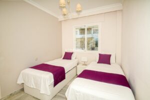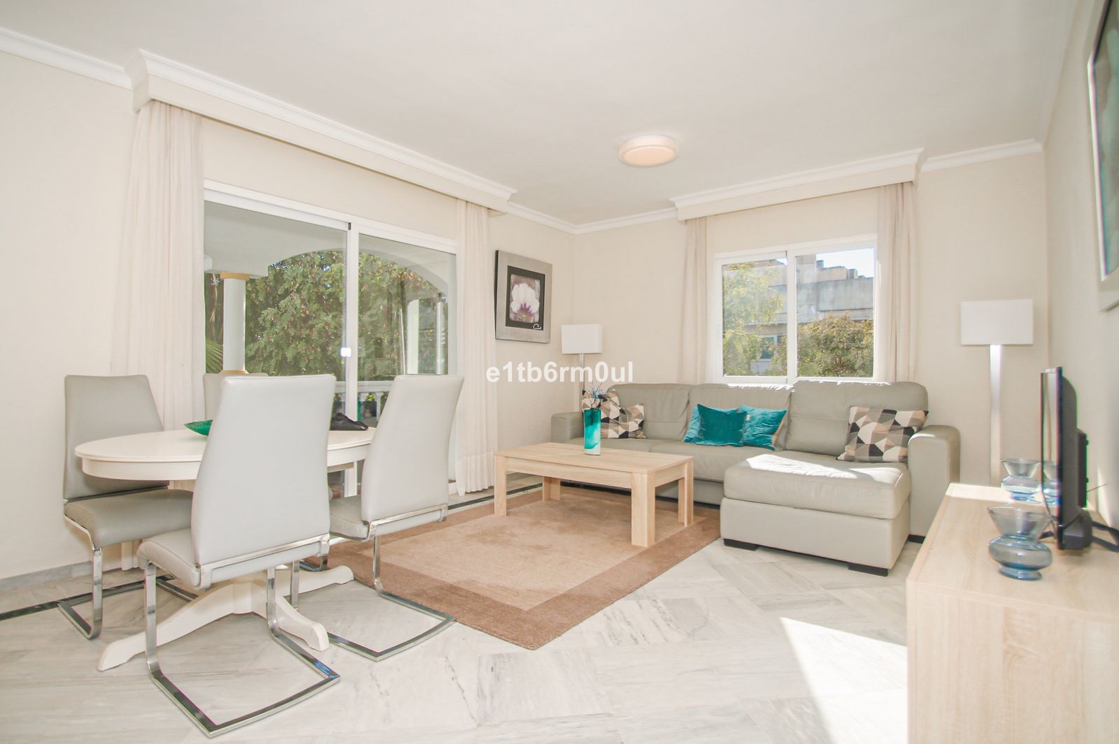 MARBELLA GOLDEN MILE • SOUTH EAST FACING • WITHIN WALKING DISTANCE TO THE BEACH AND ALL AMENITIES • Superb well-situated south east facing two bedroom apartment on the desirable Marbella's Golden Mile, within walking distance to the beach and an array of amenities such as supermarkets, restaurants, shops and transports facilities. The fully gated complex offers well-maintained tropical gardens, large swimming pool, paddle court and lifeguard during the summertime. The bright apartment comprises: entrance hall with cloak room, living/dining room with access to the afternoon sun terrace, master bedroom en suite, guest bedroom, separate bathroom and a fully fitted kitchen with adjoined utility room. Features include: an underground car parking space, A/C H+C, marble floors throughout. Perfect as a holiday home, permanent residence or investment, in a quiet complex without road noise and yet, close to the buzz of Marbella's beaches along the Golden Mile. Sold partially furnished.