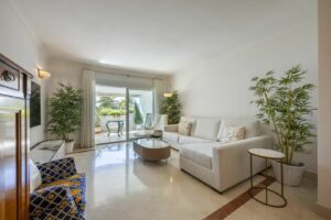This charming two bedroom flat is more than just a residence. It is located in one of Marbella's most sought-after and luxurious enclaves, just a stone's throw from the beach and the trendiest beach bars and entertainment venues such as the prestigious Cappuccino at the Don Pepe Hotel, not to mention being a five-minute walk from the Old Town.