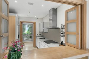The property has a floor area of 157 m², distributed over two bedrooms and two bathrooms, one of which is en-suite, as well as a separate kitchen and living room. It is a ground floor flat with a garden, ideal for enjoying the Marbella climate, with a large 56 m² terrace that extends the outdoor space and provides a pleasant feeling of privacy.