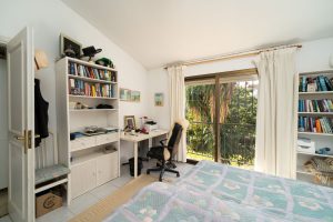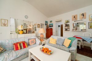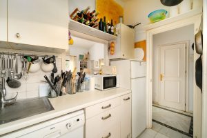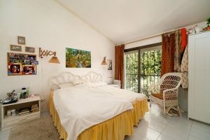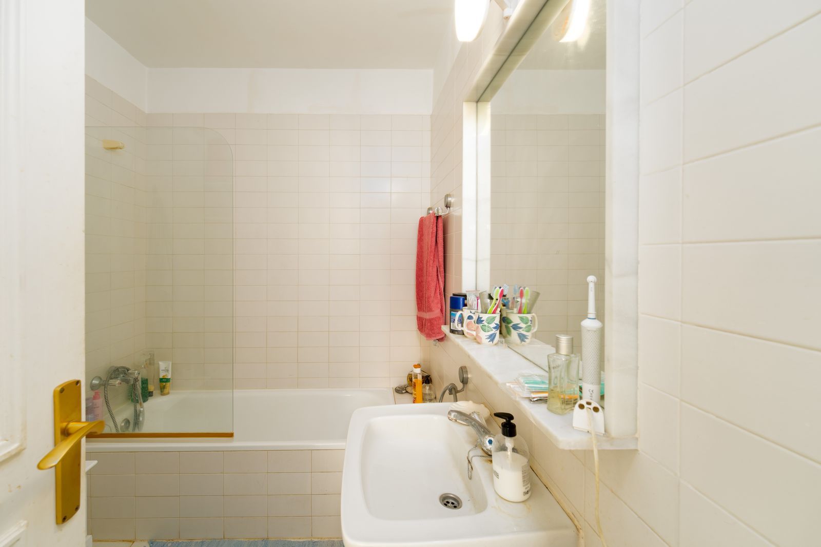 From the living room, you have access to a sunny balcony with views of lush greenery and charming glimpses of the sea. The two peaceful bedrooms come with built-in wardrobes, and the two bathrooms, both with bathtubs, offer comfort and a very practical layout.
