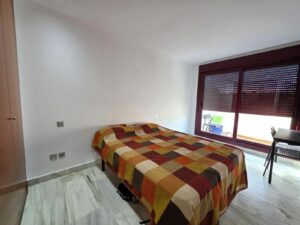 On entering the apartment you are greeted with a bright sitting/dining room with double height ceiling which allows plenty of natural light to flood in through the floor to ceiling windows. The kitchen, bedroom and sitting room all have direct access to the downstairs terrace making the apartment flow really well. The bedroom also has a full en suite bathroom with walk in shower, built in wardrobes and electric shutters.