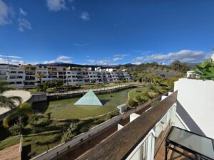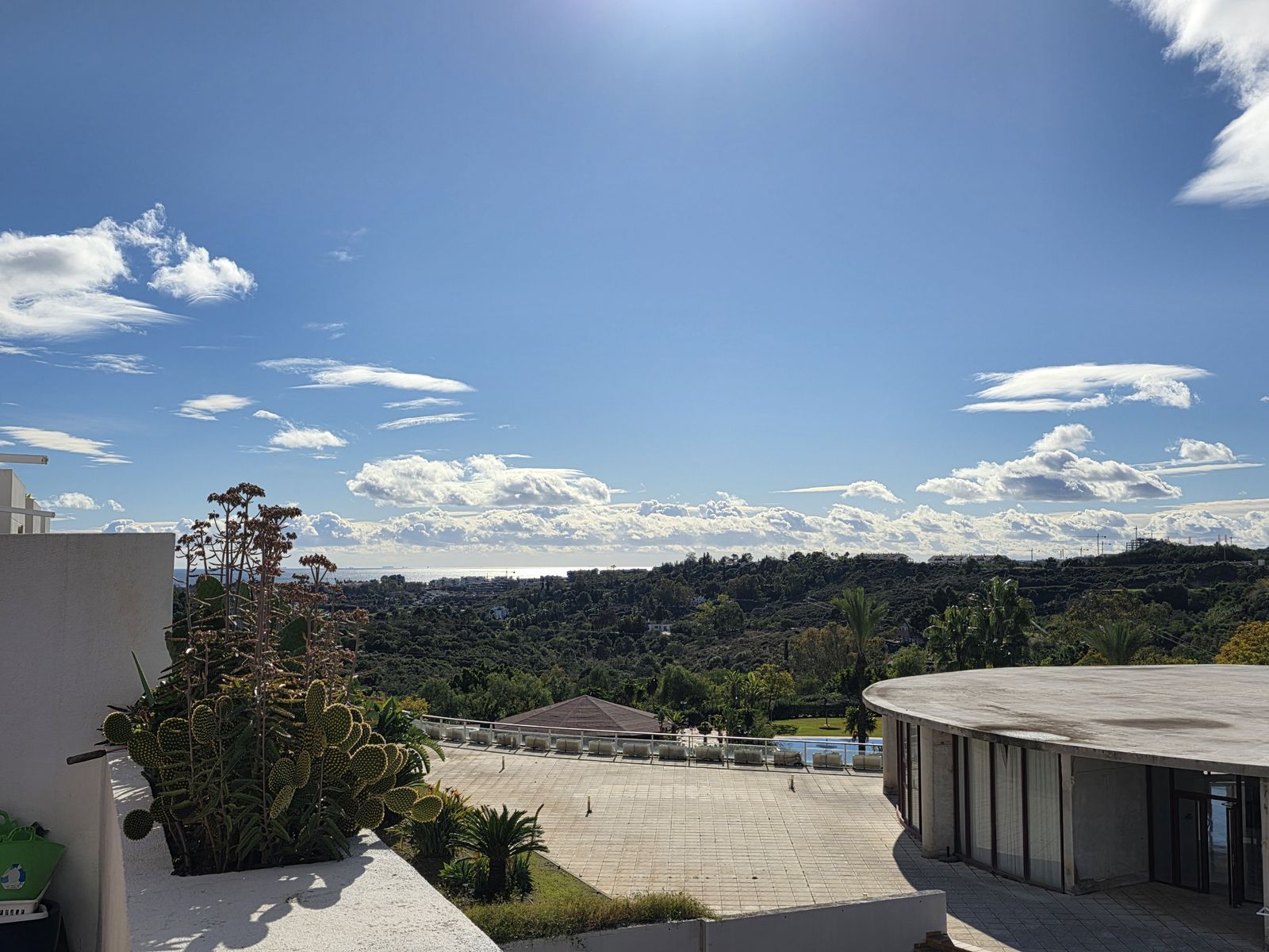 This bright and spacious one bedroom duplex penthouse is located in a popular residential complex above Selwo, along the New Golden Mile, less than 10mins drive from beaches and shops. This property is very versatile giving the buyer the option of creating a second bedroom and bathroom on the mezzanine level upstairs should a further bedroom be required. The 43m² of west facing terraces offers open views of the urbanisation, sea and surrounding countryside, making it the ideal place for alfresco dining, lazy summer siestas or watching the glorious sunsets that Marbella is famous for.