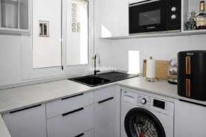 The fully renovated kitchen is equipped with quality appliances, and the entire apartment benefits from new window frames with high-efficiency glass for optimal comfort and insulation. New air-conditioning units have also been installed throughout the apartment, including both bedrooms, ensuring a pleasant indoor climate all year round.