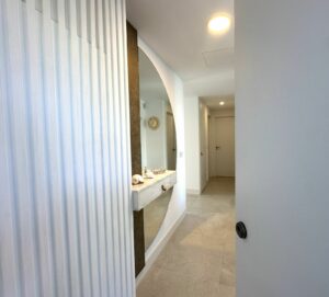 Extra features focused on comfort include: centralized air conditioning with an Air Zone system, adjustable by room; electric underfloor heating in both bathrooms; an electric awning on the first terrace and an umbrella on the second, up to 6 solar panels of 3.5 kWh that generate enough energy for self-consumption and self-sufficiency, a BBQ, storage, and built-in wardrobes (including an additional one in the second bedroom). The master bedroom also features a wall-integrated projector and excellent acoustic insulation thanks to its double door, as well as the living room windows, both with mosquito nets.